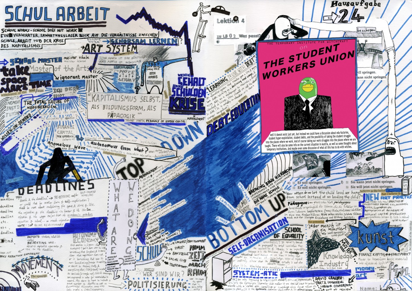 ENG: The Temporary Institute began as part of the Academy of Refusal - an occupation at the Art Academy in Vienna in October 2009 that was part of the “Unibrennt” university occupation movement. The Institute was part of an attempt at an oppositional urban university/union; the flipside to glossy ads, brochures and marketing campaigns, a manifestation of the unseen spectral labour that flows through, creates and gives value to any social institution. It is this ghost that is collectively able to learn, to organize and to act.